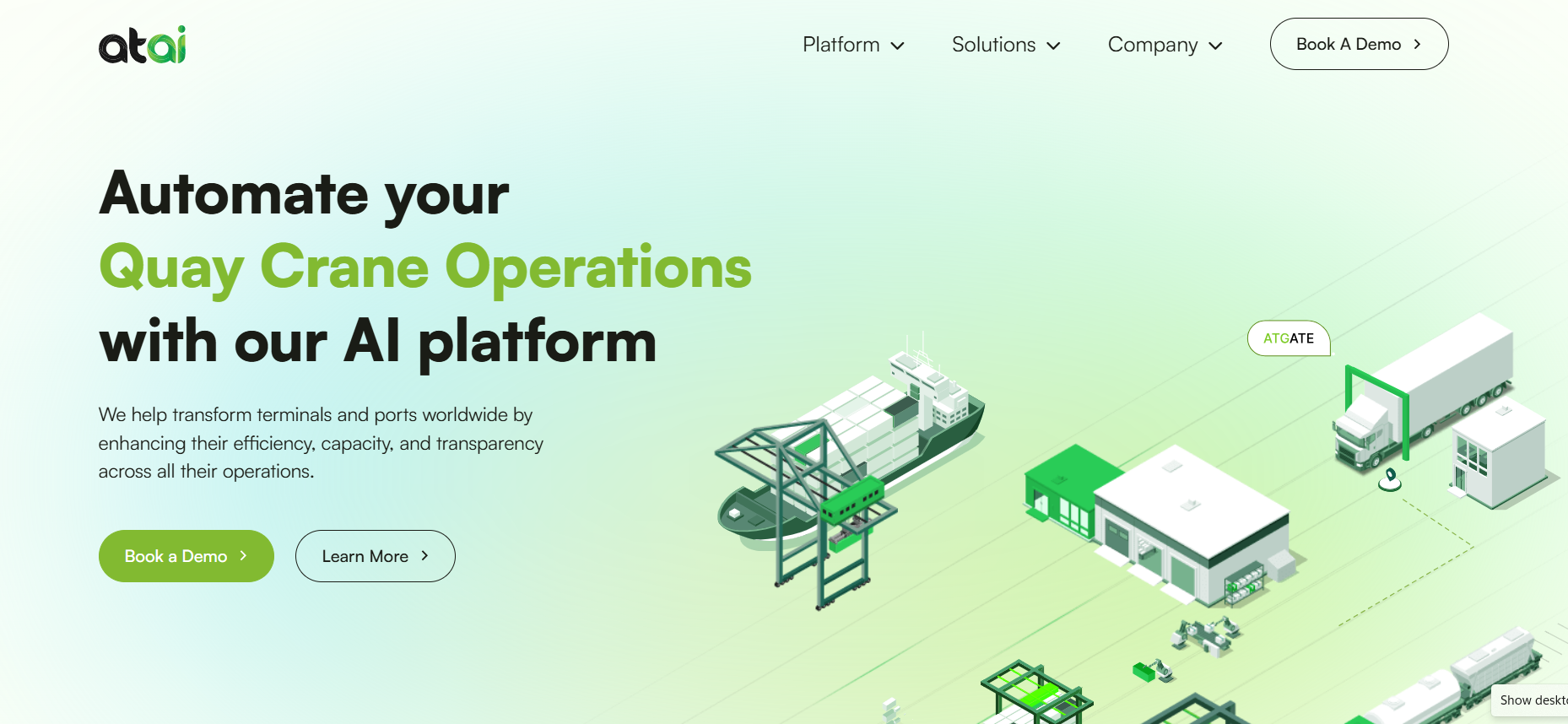 ATAI is an advanced AI platform designed specifically for the maritime, logistics, and supply chain sectors, enabling automation across gate, yard, rail, warehouse, and crane operations. It integrates deep learning models, computer vision, and real‑world data to deliver real‑time insights and operational intelligence. ATAI offers modular, open‑standard architecture and is built to integrate with existing terminal systems while improving capacity and reducing manual workload. Its deployment has demonstrated measurable impact including streamlined workflows and reduced emissions.
