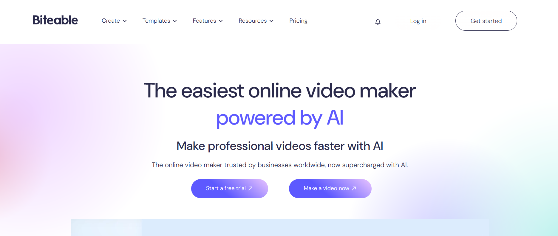 Biteable is an online AI video maker designed to simplify video production for businesses and creators. It enables users to generate videos from prompts or scripts, automatically building scenes, animations, and voiceovers. The platform combines AI tools with a large library of templates, stock footage, and branding features to streamline content creation. It also includes AI avatars, voice generation, captions, and translation tools, making it suitable for global audiences.