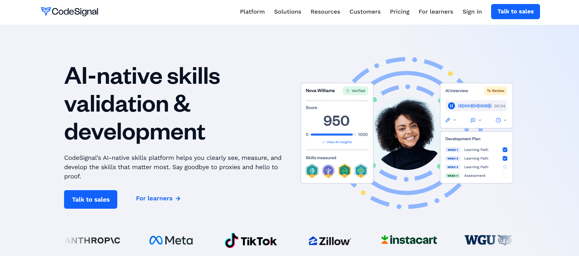 AI-powered skills assessments and learning for hiring and growth
