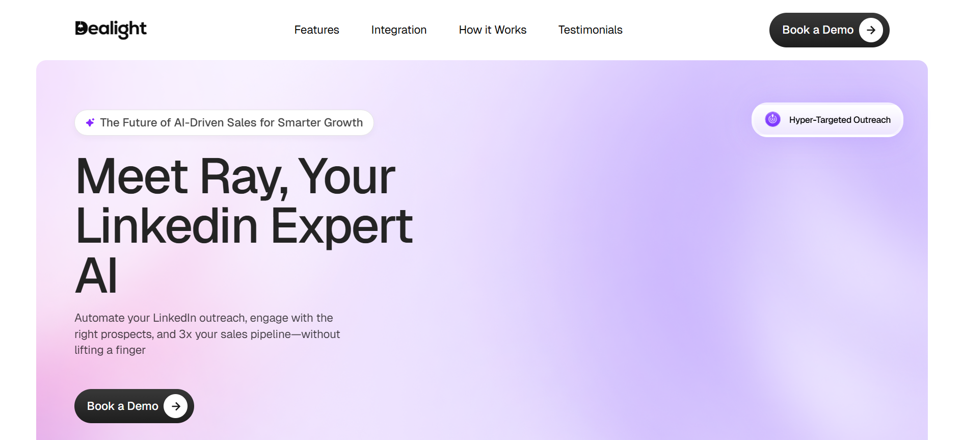 Dealight AI is a sales automation platform designed to optimize outbound prospecting and account-based selling. Its core AI agent, “Ray,” analyzes large datasets to identify ideal customer profiles (ICPs), detect buying signals, and surface high-conversion prospects. The platform automates LinkedIn outreach with personalized messaging and multi-step engagement, reducing manual effort while improving response rates. It continuously learns from campaign performance, refining targeting and messaging through AI-driven optimization. Built for service-based businesses, Dealight helps teams streamline research, improve targeting accuracy, and significantly increase booked meetings and deal conversions.