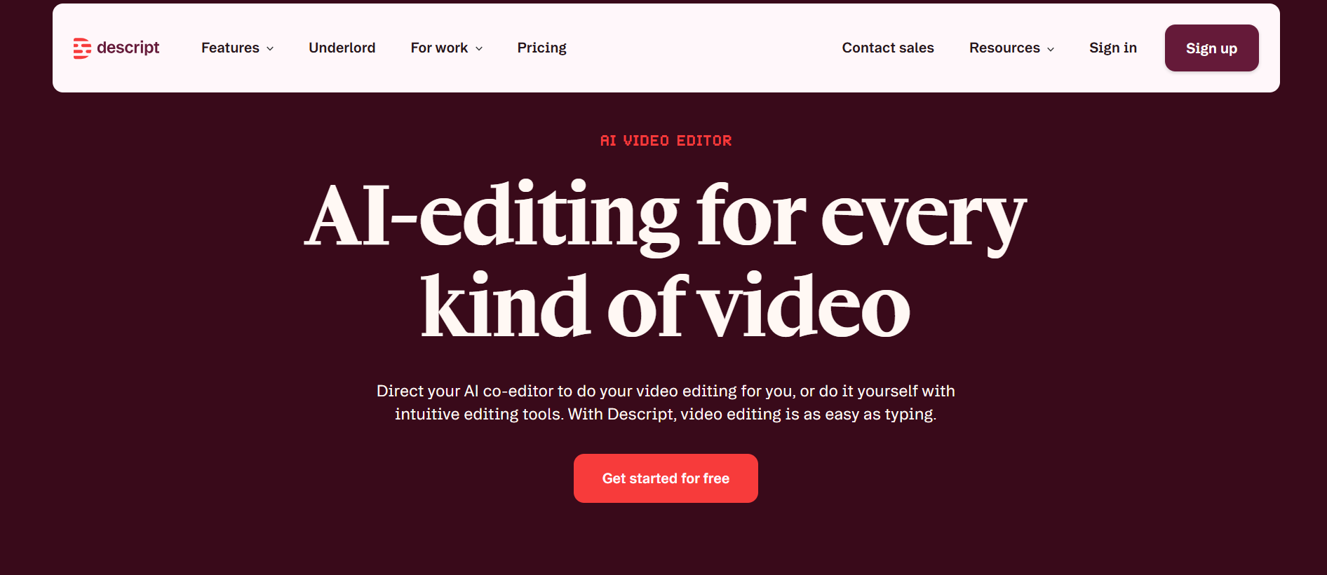 Descript is an all-in-one content creation platform designed for video editors, podcasters, and creators. It allows users to record, transcribe, edit, and publish audio and video content using a text-based interface, significantly simplifying traditional editing workflows. The platform includes advanced AI features like voice cloning (Overdub), filler word removal, eye contact correction, and background removal. It also offers collaboration tools, screen recording, and access to stock media assets. With its AI-driven automation and intuitive interface, Descript reduces production time while maintaining professional-quality output.