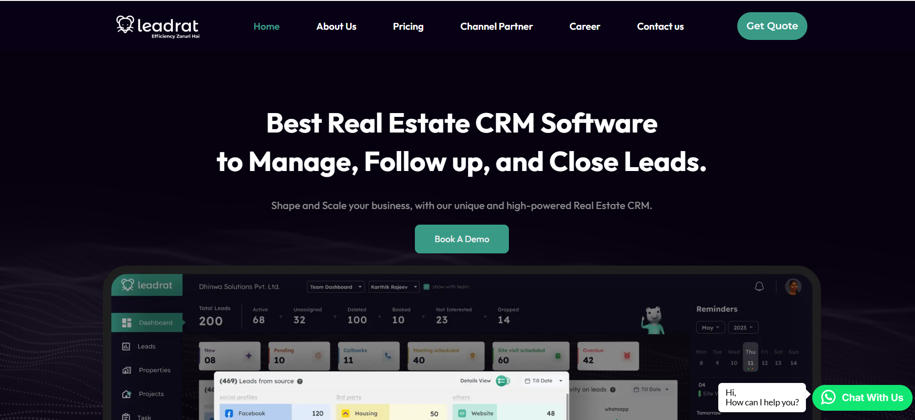 Leadrat CRM offers a mobile-friendly and easy-to-use interface tailored specifically for the real estate industry, enabling agents, brokers, and developers to capture and track leads from multiple channels in one dashboard. It provides tools for lead routing, property listing management, team task coordination, automated follow-ups, and real-time reporting. Its integrations with ads and listing platforms ensure leads aren’t missed, while performance analytics help optimize sales efforts. The CRM also supports goal setting, attendance tracking, and data-driven insights for better decision-making.
