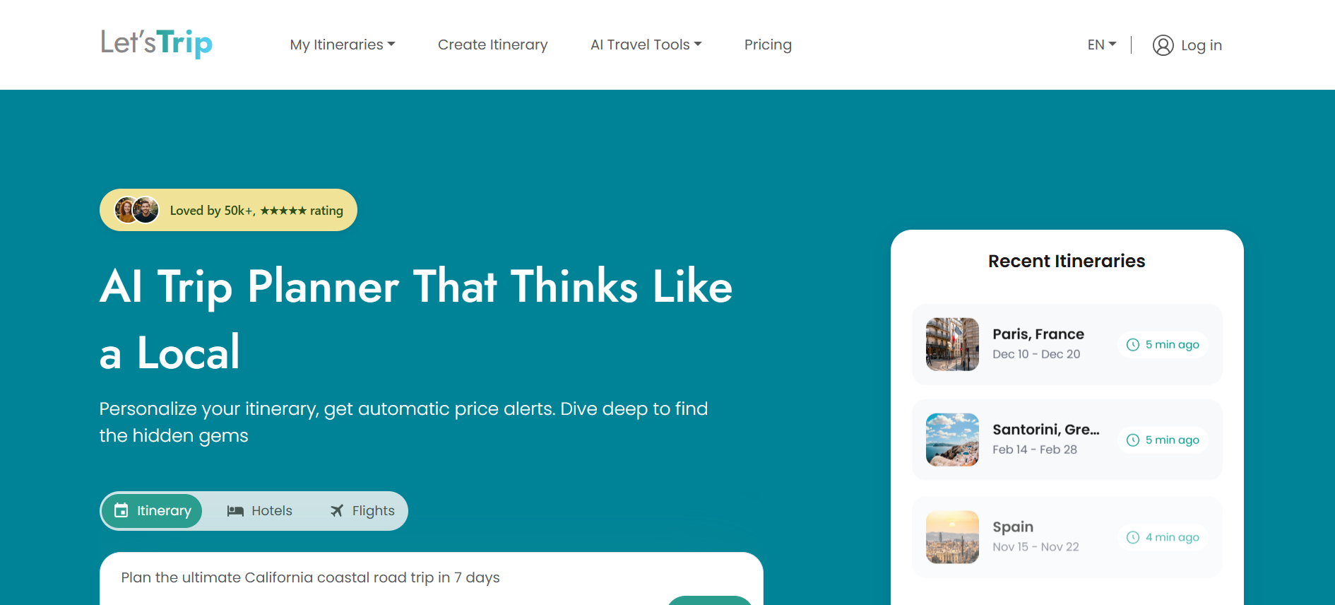 LetsTrip AI is a smart travel assistant designed to help users plan trips quickly and efficiently. By entering travel preferences such as destination, duration, and budget, users receive customized itineraries that include activities, accommodations, and travel suggestions. The platform focuses on simplicity and speed, enabling users to generate and refine travel plans with minimal effort. It also helps users discover new destinations and curated experiences tailored to their interests. By automating research and planning, LetsTrip AI reduces the time and complexity involved in organizing trips.