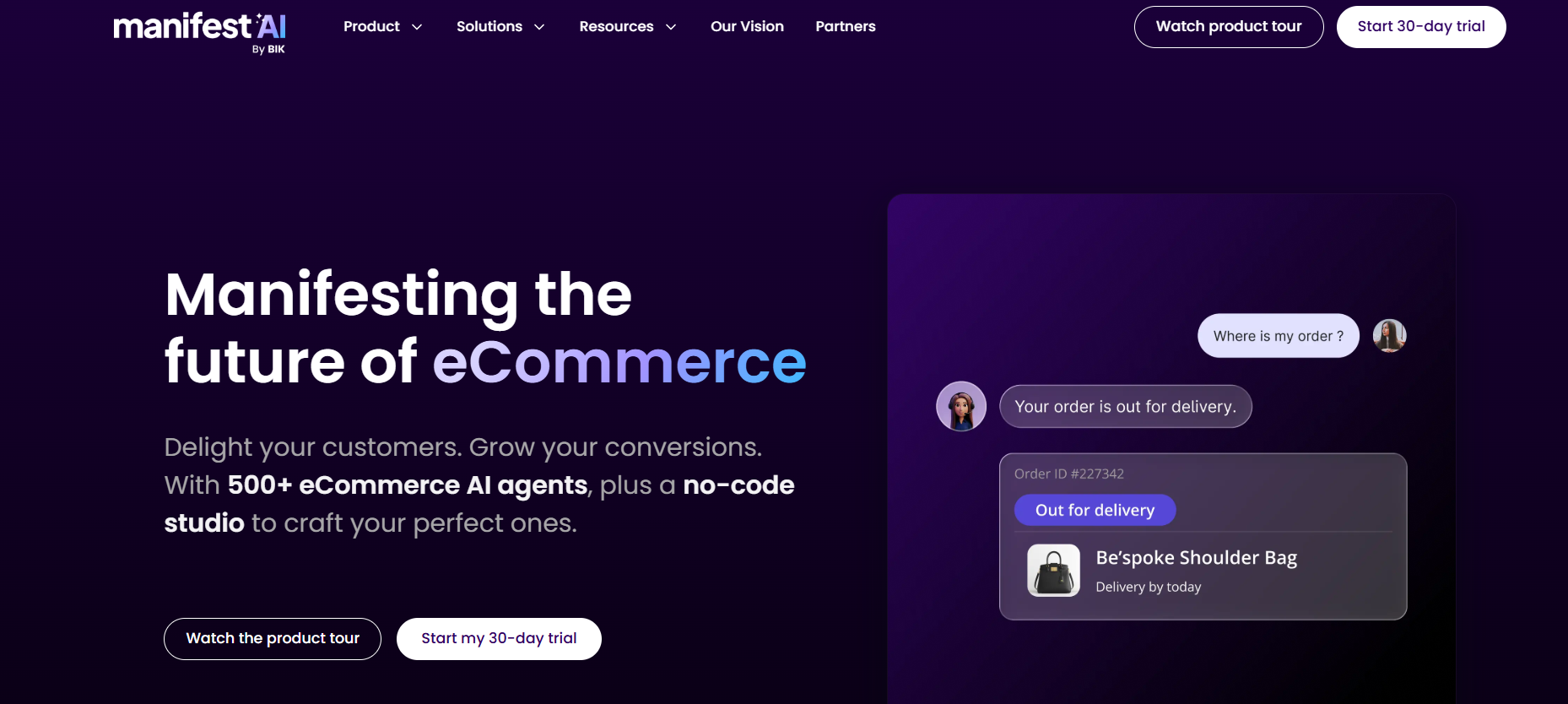 Manifest AI is a no-code platform designed for e-commerce brands to deploy AI-powered sales and support agents across their online stores. It offers 500+ pre-built AI agents that handle tasks such as product discovery, customer support, and personalized recommendations. The platform integrates directly with store data (like products, policies, and FAQs) and automatically trains itself to provide accurate responses and suggestions. It includes features like AI quizzes, nudges, search, and fit prediction to guide customers through their buying journey and reduce drop-offs.