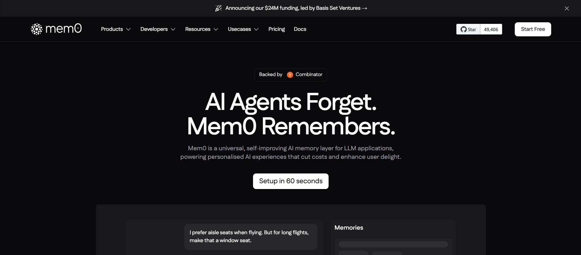 Mem0 is an AI infrastructure platform designed to give large language model applications long-term memory capabilities. Instead of relying solely on temporary context windows, Mem0 stores and retrieves important information from previous interactions so AI systems can maintain continuity over time. The platform automatically extracts relevant details from conversations, organizes them into structured memory formats, and retrieves them when needed to enhance AI responses. Developers can integrate Mem0 with a few lines of code and use it alongside frameworks such as OpenAI, LangGraph, and CrewAI. By compressing conversation history and storing key context efficiently, Mem0 helps reduce token costs while improving AI personalization and reliability in production systems.