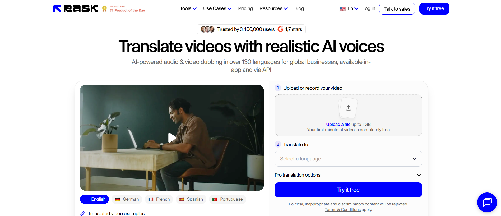 Rask AI is a powerful AI-driven platform for video translation and dubbing, designed to help creators, educators, and businesses expand their global reach. It supports automatic transcription, translation into 130+ languages, and AI voice cloning to maintain the speaker’s original tone and style. The platform also includes lip-sync technology to align dubbed audio with video for a natural viewing experience. Rask AI simplifies the localization process, eliminating the need for manual editing or voice actors. With fast processing and scalable workflows, it enables efficient multilingual content distribution across platforms.