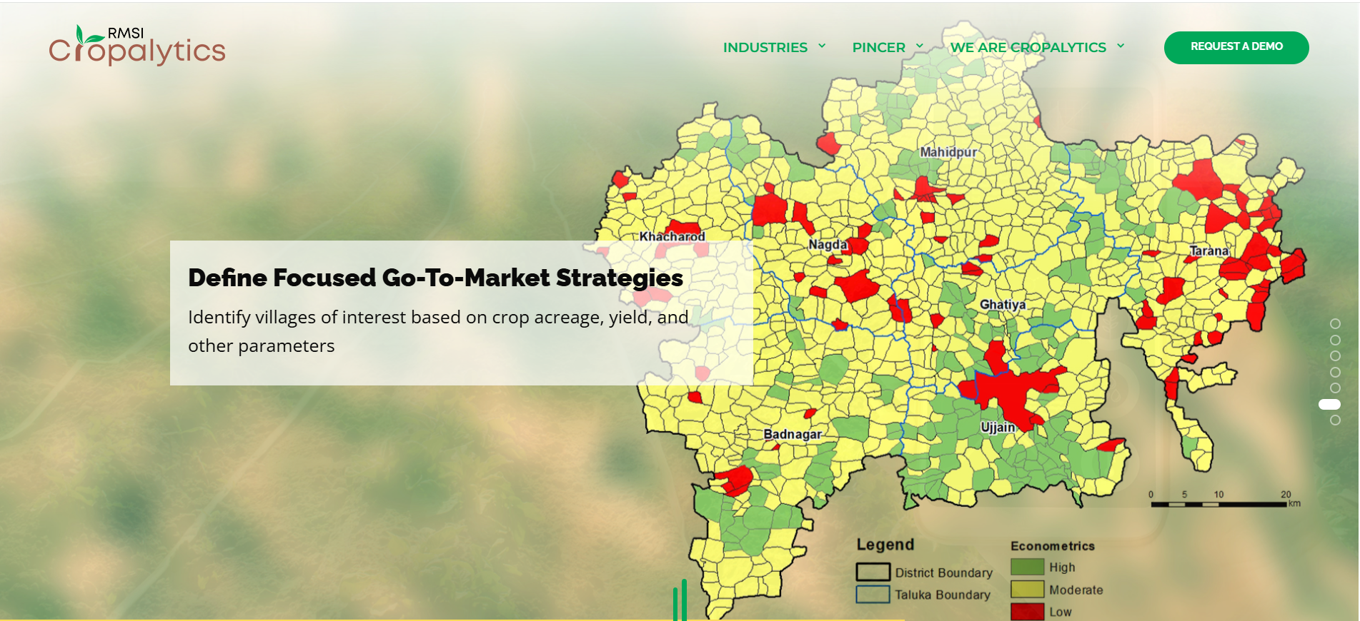 RMSI Cropalytics leverages advanced AI/ML, remote sensing, and GIS expertise to transform raw agri-data into actionable insights for stakeholders like insurers, input firms, banks, and governments. Its platform features village-level crop mapping, pest and disease forecasts, risk profiling, and decision support tools that help optimize strategies across seasons. The product is backed by award-winning innovation and deep domain expertise in crop and meteorological science. It supports proactive planning and resource allocation across the agri ecosystem.