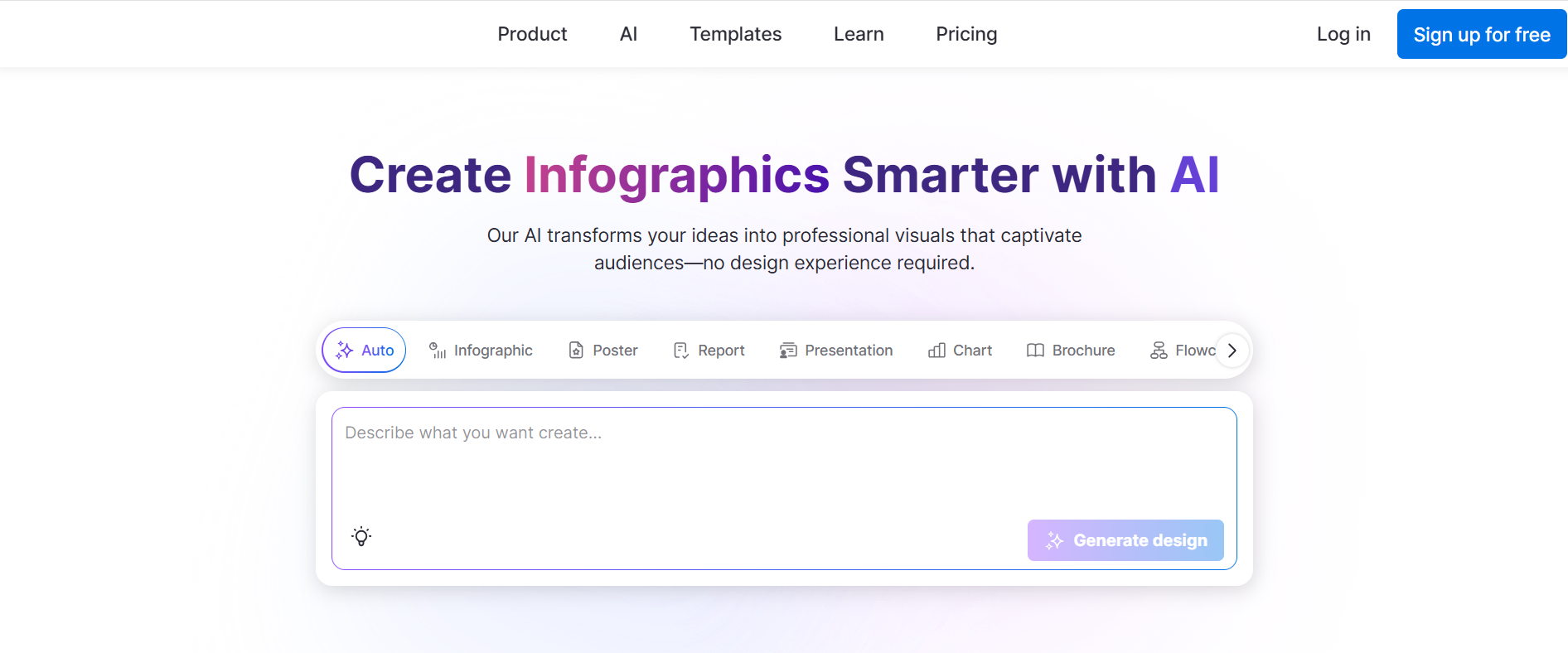 Create professional infographics and visuals with AI