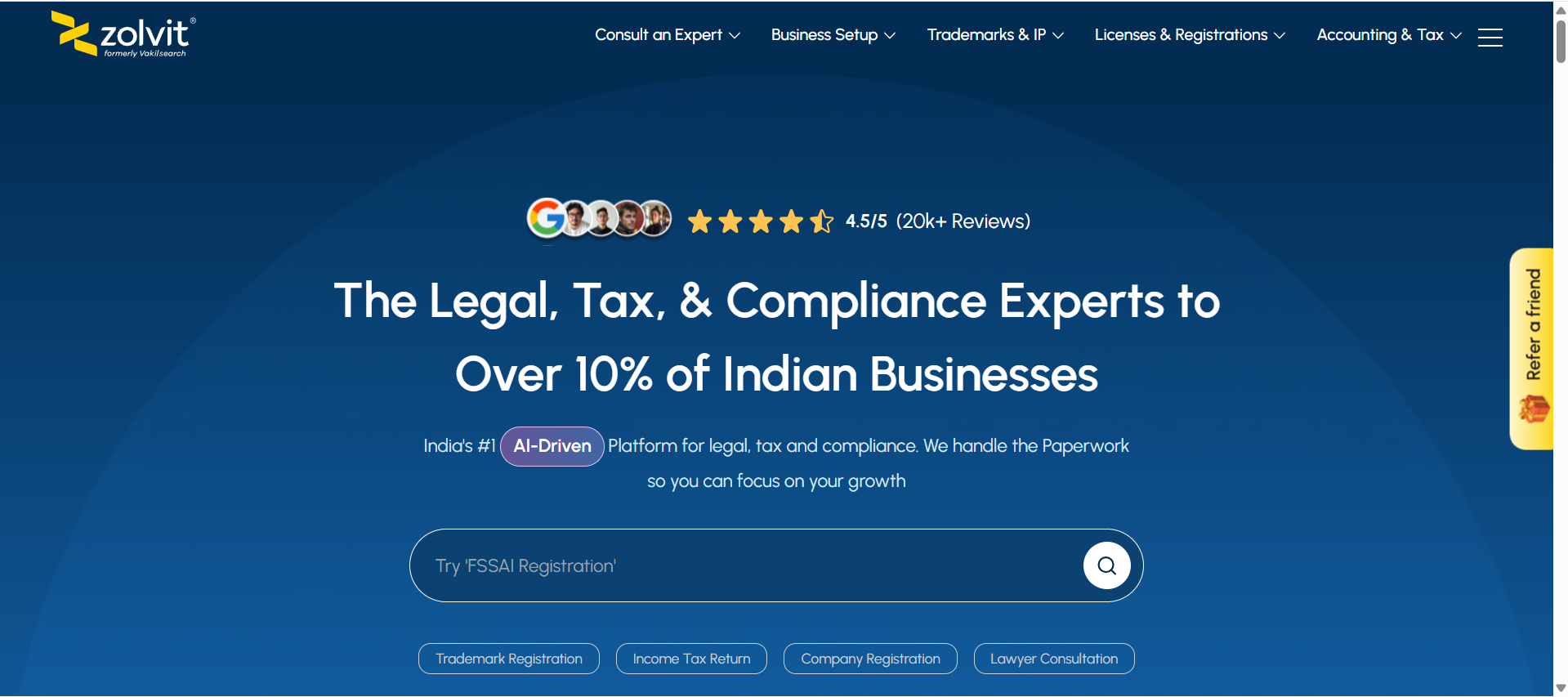 Zolvit delivers end-to-end business setup and compliance services including company incorporation, GST and tax filing, intellectual property registration, and expert consultations. It pairs tech-enabled dashboards with certified legal, tax and secretarial professionals to help businesses manage filings and deadlines efficiently. The platform’s unified view and automation capabilities reduce manual workload and the risk of missing statutory requirements. With extensive service offerings and a growing customer base, Zolvit targets founders and small businesses seeking reliable, accessible legal support.